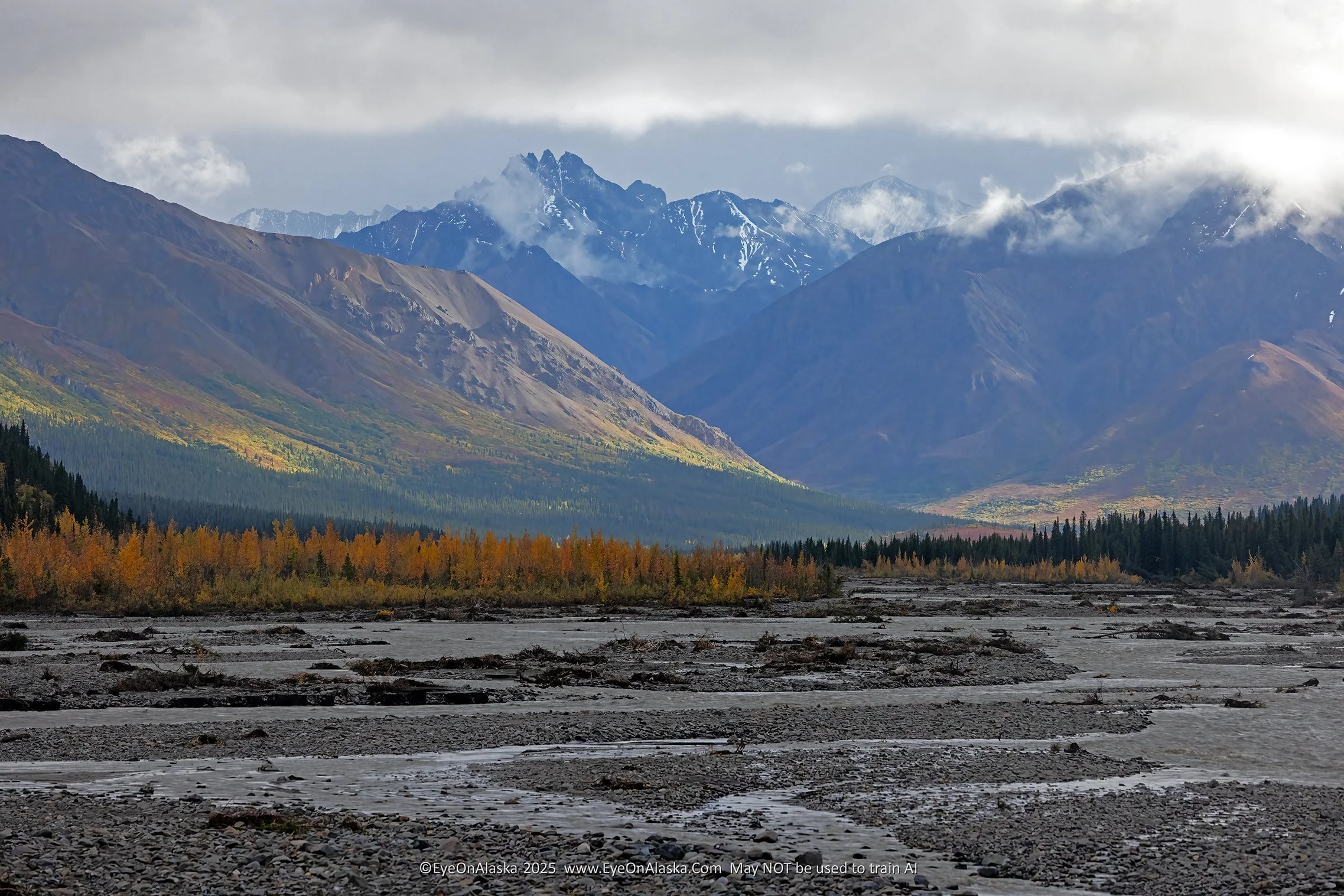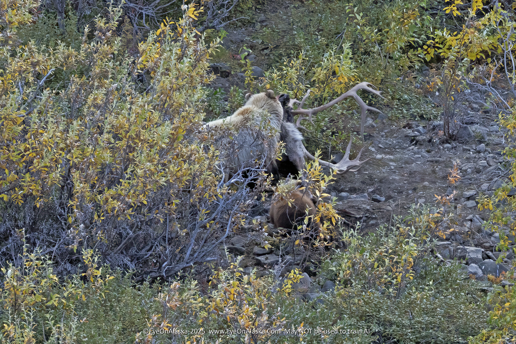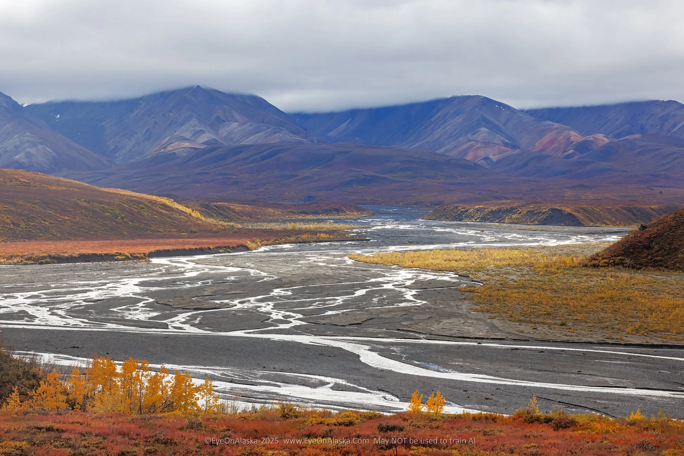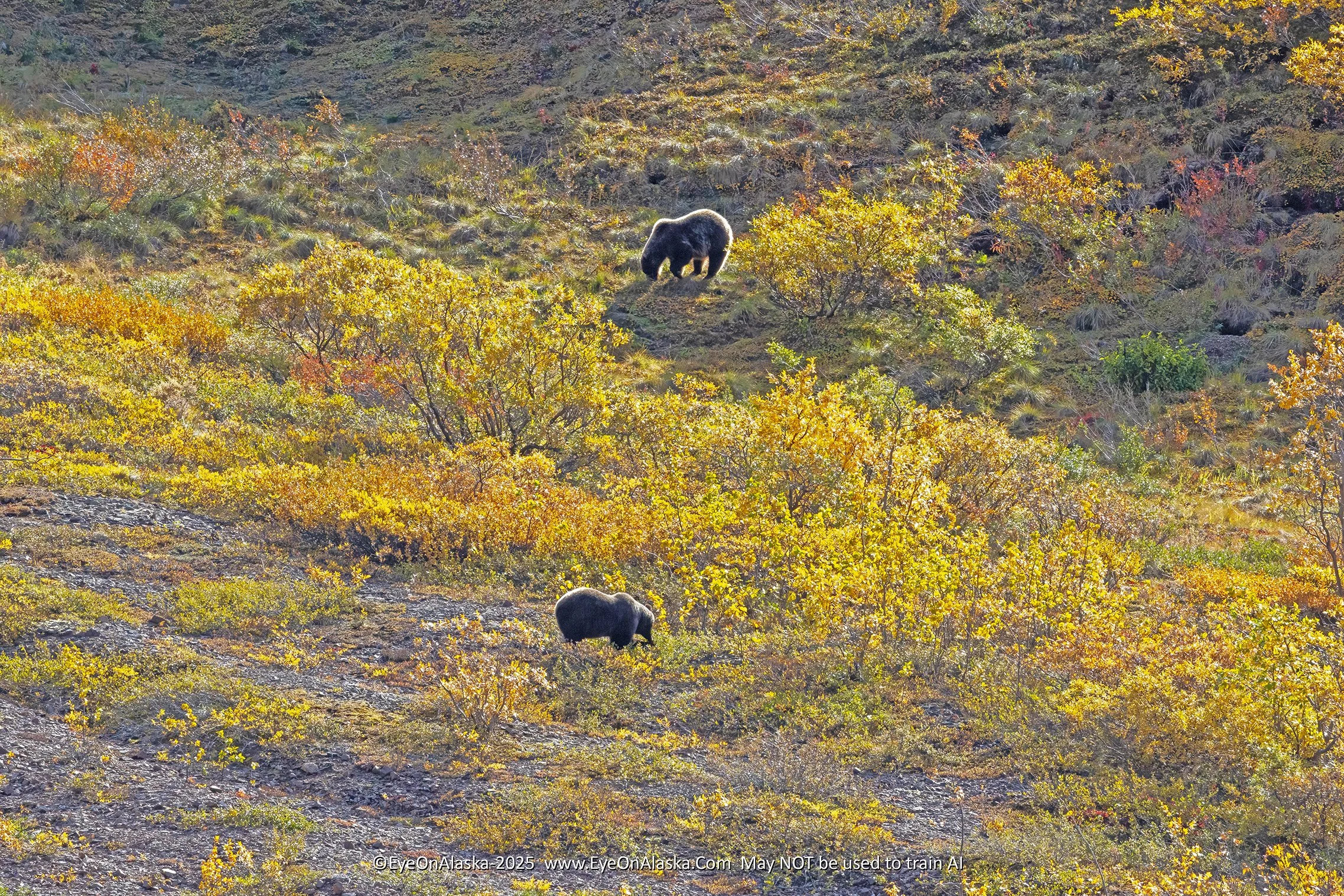 Another week in Denali National Park, another wonderful trip to our favorite place on earth. We weren’t quite sure if we were going to get to go, as several days before our reservation they had heavy snow and rain that caused flooding and washed out the Teklanika bridge approaches, halting road traffic and causing the evacuation of the Teklanika campground where we always stay. Luckily, they got everything repaired the day before we got there.